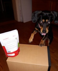 Und die Geschmacksrichtung scheint auch zu stimmen, denn Eva würde sich nie freiwillig auf kalten Boden legen - für die Hühnerbruststückchen schon!